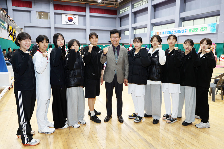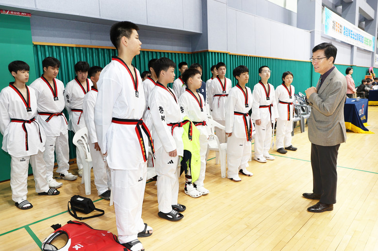 윤건영 교육감은 태권도 종목 경기가 열린 충북스포츠센터를 방문해 학생선수들을 격려하며 “자신의 한계를 넘어 당당히 도전하고 서로의 도전을 응원하는 성숙한 체육문화 속에서, 그동안의 노력과 성장을 나누는 뜻깊은 시간이 되길 바란다”라며 “이번 대회를 계기로 한층 더 도약할 여러분의 밝은 미래를 진심으로 응원한다.”라고 말했다.