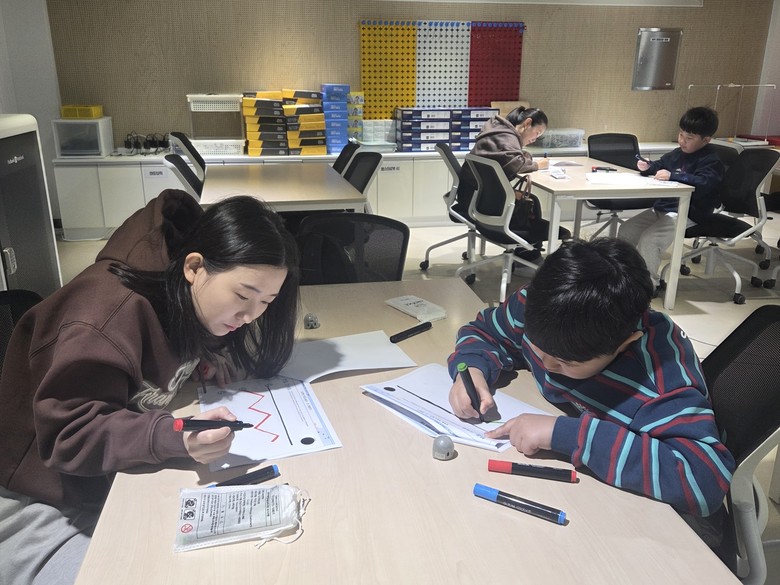 이날 1기 수업에서는 기초 코딩 로봇을 활용해 색상 코드를 기반으로 로봇의 움직임을 제어하는 활동을 진행했으며, 가족이 함께 협력해 문제를 해결하는 과정을 통해 소프트웨어적 사고력과 문제 해결력을 자연스럽게 키울 수 있도록 했다.