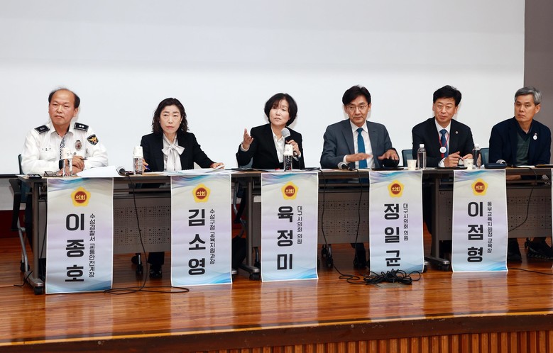 교육위원회 육정미 의원(더불어민주당 비례대표) 주재로 진행된 이날 간담회는 정일균 대구시의원, 전영태 수성구의회 의장 등 구의원, 교육청 및 수성구청ㆍ수성경찰서 관계자들과 학교장ㆍ학부모 등 100여 명이 참석해 학교별 현안 사항에 대해 묻고 답하는 형식으로 1시간 40분 동안 진행됐다.