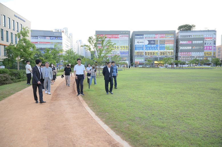 먼저 최민호 시장은 새롬동 잔디광장을 방문해 시설 현황을 살피고 광장을 이용하는 주민들의 의견을 청취했다.