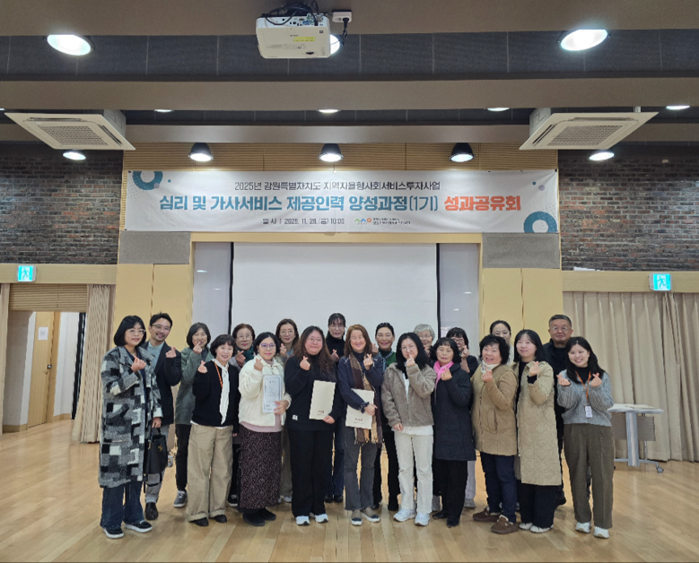 [강원도 세계타임즈=김민석 기자] 강원특별자치도 사회서비스원(원장 이은영) 소속 강원지역사회서비스지원단은 도내 지역자율형 사회서비스 투자사업의 심리 및 가사서비스 분야 제공인력 양성과정의 성과를 공유하는 자리를 마련했다.
