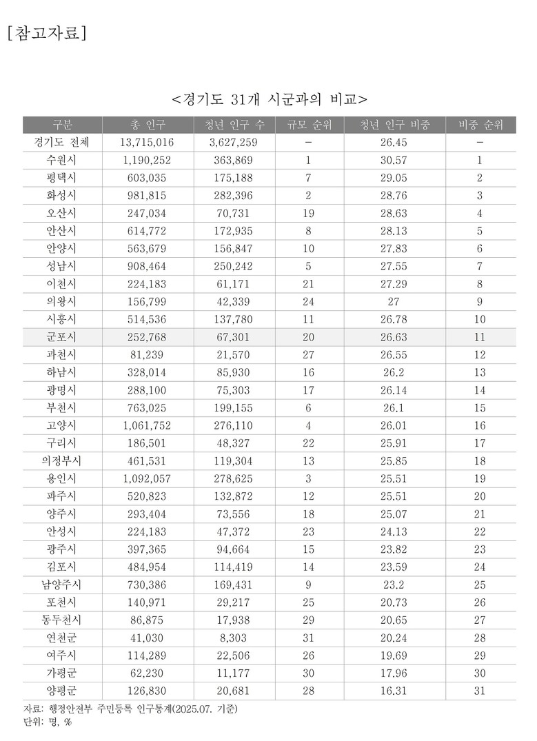 연구책임자인 오재호 경기연구원 선임연구위원은 “청년센터 성과관리는 숫자를 채우기 위한 평가가 아니라, 청년의 삶이 실제로 나아졌는지를 확인하는 도구”라며 “군포시 사례는 다른 기초자치단체도 무리 없이 적용할 수 있는 현실적인 기준을 제시한 만큼, 단계적으로 도입해 정책 효과를 높이는 데 활용하길 바란다”고 조언했다.