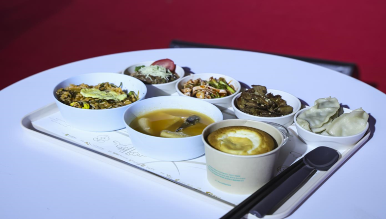 | ▲ [택슐랭 오픈세리머니] 택슐랭가이드 선정 식당 음식들로 구성된 한상차림 *왼쪽부터 택슐랭 명란 마라함박(고관함박), 복껍질무침(제주복국), 돼지갈비(초량갈비), 고기만두·부추당면만두(신발원), 비빔밥(원조일미기사식당), 대구탕(맛나기사식당), 영도할매빵(카페385) |