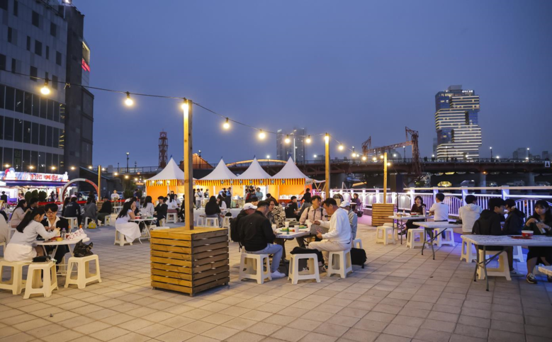 | ▲ 유라리광장의 밤바다를 배경으로 한 ‘야경포차’ |