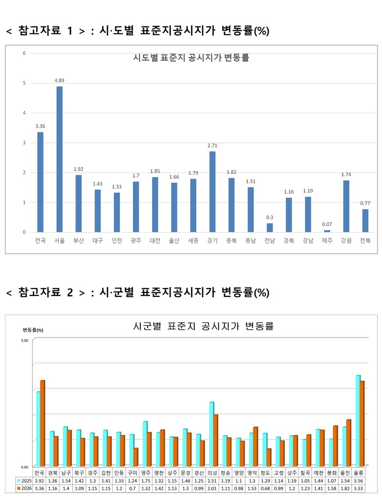 이번 표준지 공시지가는 매년 1월 1일 기준의 토지에 대한 감정평가와 2026년 개별공시지가 산정 등을 위한 기준가격으로 활용된다.