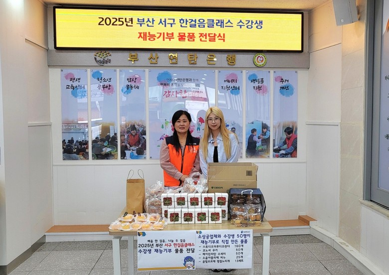 [서구 세계타임즈=이용우 기자] 부산광역시 서구(서구청장 공한수)는 지난 2일 추석을 맞아 ‘한걸음클래스 배움 한 걸음, 나눔 두 걸음’ 사업에 참여한 소상공업체와 수강생들이 직접 만든 물품을 부산연탄은행에 전달했다고 밝혔다.