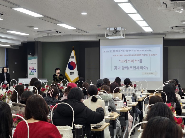 [광명시 세계타임즈=송민수 기자] 경기도광명교육지원청(교육장 김명순)은 지난 2025년 12월 17일 수요일, 광명교육지원청 해오름실에서 초·중·고 학부모 70여 명이 참석한 가운데 ‘2025 경기공유학교 하반기 평가회 및 치유농업 체험연수’를 성황리에 개최했다.