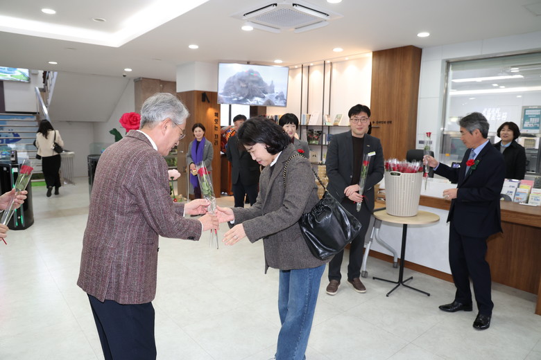올해 여성의 날 주제인 ‘베풀수록 커진다’에 맞춰 진행된 이날 행사에서 박종훈 교육감을 비롯한 간부 공무원들은 출근하는 직원들에게 장미꽃과 빵을 직접 전달했다. 여기서 장미는 정치적 권리인 참정권을, 빵은 굶주림 없는 생존권을 상징한다. 참석자들은 이를 통해 성평등 실현을 향한 역사적 의미를 함께 나누고 서로 존중하는 메시지를 공유했다.