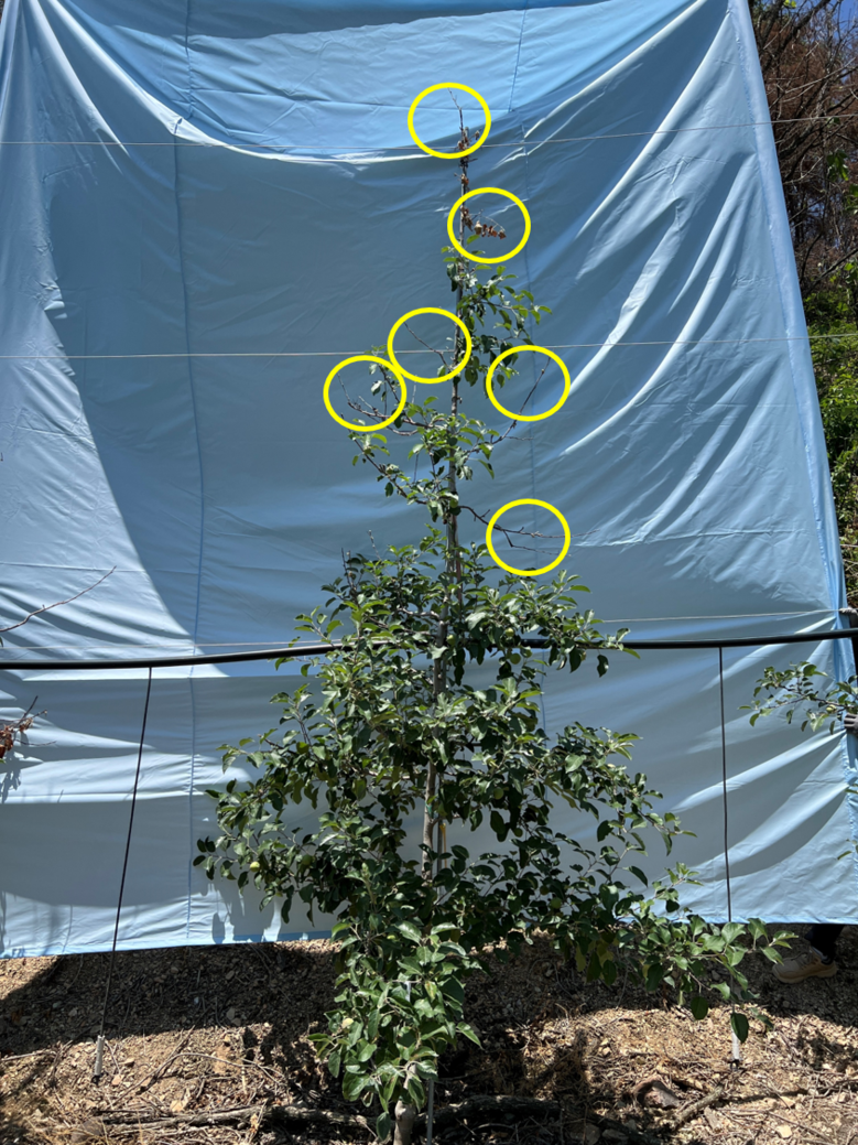 현재 5월 상순에 조사된 후지(4~7년생) 피해 나무의 주당 평균 화총수(꽃눈총수)는 정상주 120개보다 적은 68개(43.8%)로 적었고, 6월 하순부터 착과량, 병해충 발생 등 지속적인 모니터링을 통해 사과 생산량과 품질특성을 조사할 계획이다.