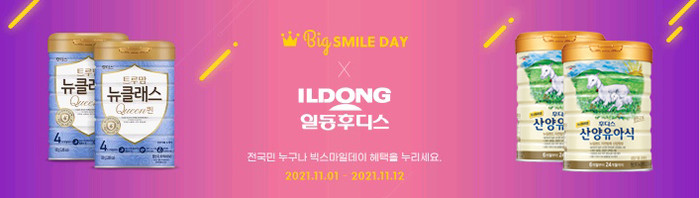 이번 일동후디스 단독 브랜드관에서는 일동후디스의 다양한 인기 제품을 합리적인 가격에 만나볼 수 있다. 빅스마일데이 쿠폰을 통해 단백질 건강기능식품 ‘하이뮨 프로틴 밸런스’, 산양분유 ‘산양유아식’, 아이 음료 ‘아이얌 건강한 아이사랑 주스 2종’, 아이 영양제 ‘비오타민’과 ‘초유밀 플러스’ 등을 최대 할인가로 구매 가능하다.