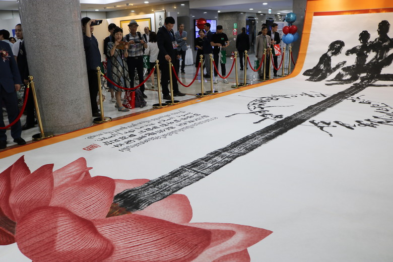 게다가 밑그림도 없이 써 내려간 평화지도 서예회화에서 작가의 탁월한 공간 개념과 조형적 감각을 엿볼 수 있다. 한 작가는 독창적인 서예회화라는 예술적 측면을 넘어, ‘세계평화에 대한 간절한 염원’이란 인류공영의 이념과 인문학을 캔버스에 담고 있다.
