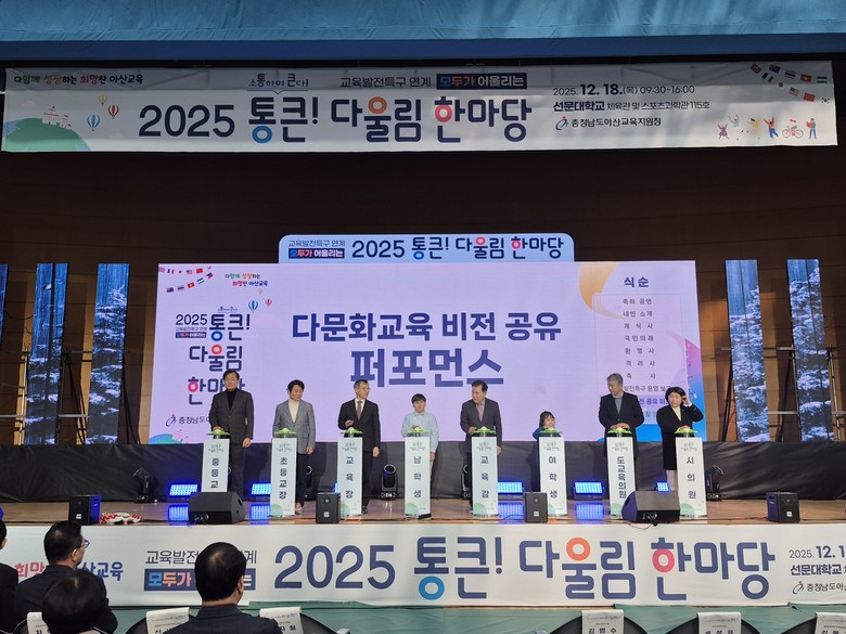 [아산시 세계타임즈=이현진 기자] 아산교육지원청(교육장 신세균)은 12월 18일(목) 선문대학교 아산캠퍼스 체육관에서 학생, 교원, 학부모, 지역 주민 등 교육공동체가 참여한 가운데, ‘2025 교육발전특구 연계 모두가 어울리는 통큰 다울림 한마당’을 성황리에 개최했다.