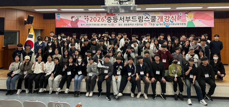 [대구 세계타임즈=한윤석 기자] 대구서부교육지원청(교육장 김규은)이 지난 3월 28일(토) 경운중학교에서 ‘2026. 중등 서부드림스쿨’ 개강식을 개최하고 거점학교 6교*를 중심으로 4월 4일(토)부터 본격적인 운영을 시작한다고 밝혔다.
