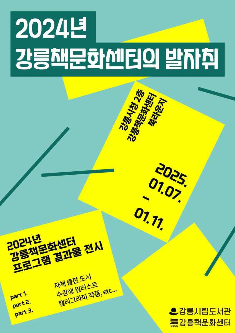 강릉책문화센터 관계자는 “이번 전시로 더 많은 강릉시민들이 책문화센터의 활동과 이용에 관심을 가지고, 글을 쓰고 출판하는 일에 보다 가벼운 마음으로 도전할 수 있게 되기를 바란다”고 전했다.