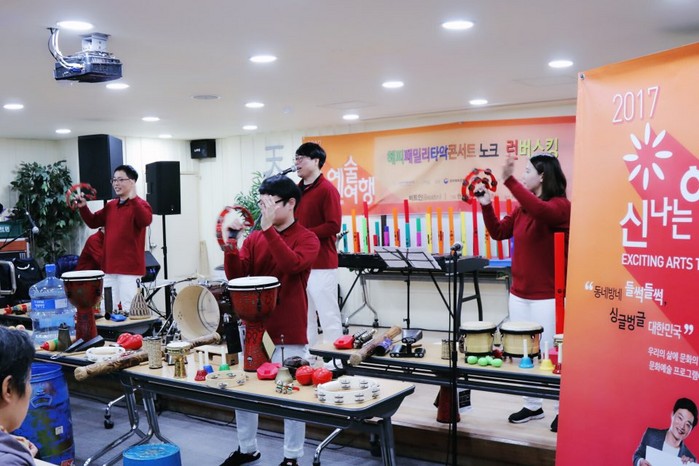 국내 인기 타악창작그룹의 레전드 '발광(發光) & 딱따구리음악회'를 보유하고 있는 공연제작사 비트인예술단(공동대표 한상현 임준식)은 지난 12월 8일 서울시 노원구에 있는 ‘천애재활원’에서 ‘해피패밀리타악콘서트 노크, 런버스킹’을 개최했다.
