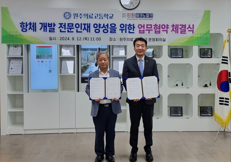 원주의료고, 강원테크노파크와 항체 개발 전문 인재 양성을 위한 업무협약 맺다