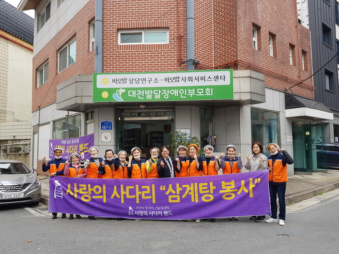 대전발달장애인부모협회 김명숙 회장은 “오늘 사랑의 사다리 밴드에서 맛있는 삼계탕, 묵무침, 부침개를 지원해주어서 큰힘과 위안이 된다.”면서 감사함을 전했다.