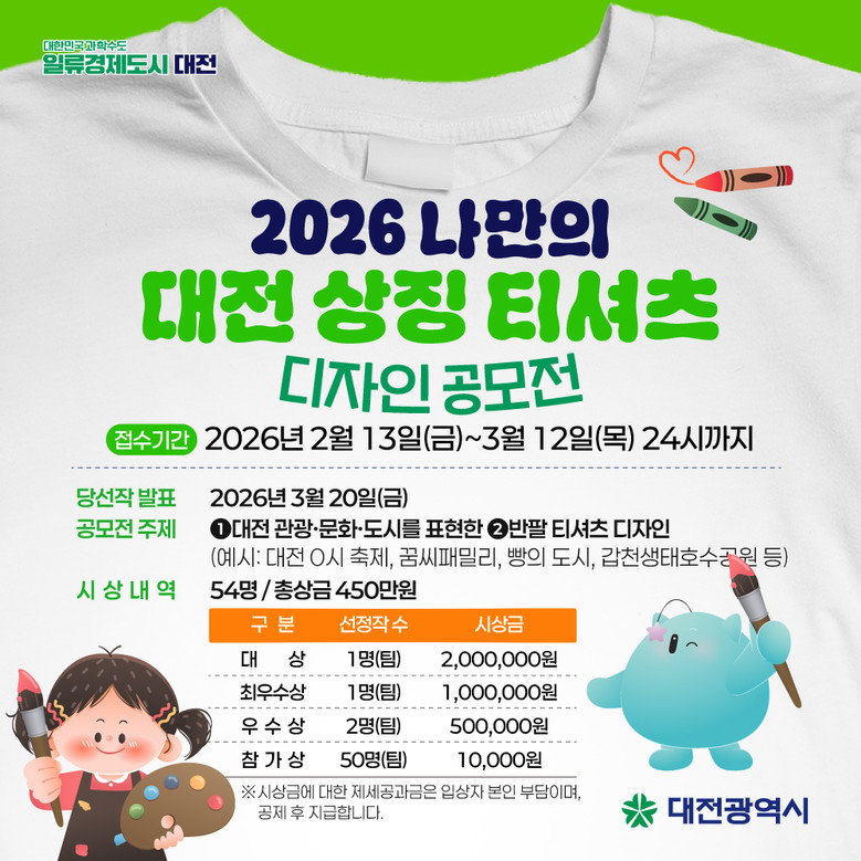 우수작은 2026 대전 0시 축제 공식 행사 티셔츠로 제작.활용할 계획이다.