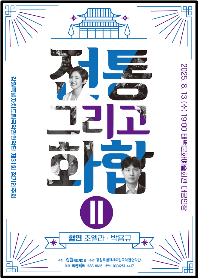 강원특별자치도립국악관현악단 김창환 예술감독 겸 상임지휘자는 “이번 정기연주회는 전통과 현대의 조화로움을 통해 시대를 관통하는 울림을 전하고자 했다. 음악이라는 언어를 통해 과거와 현재가 만나고, 함께 미래로 나아가는 뜻깊은 여정을 관객 여러분과 나눌 수 있기를 바란다”고 밝혔다.