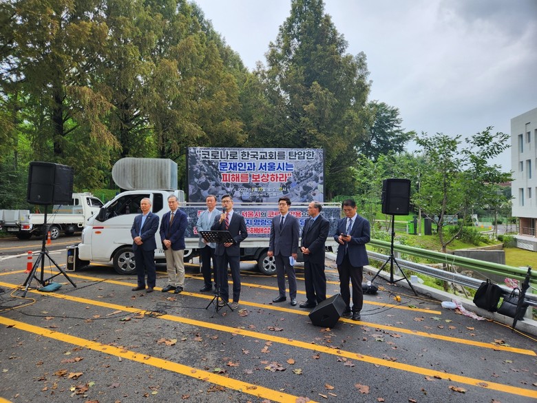 이와 관련 자유통일을위한교회총연합회(자교총) 17일, 오산리 최자실 금식기도원’에서 긴급 기자회견을 갖고, “코로나를 빙자한 사기 방역으로 교회를 탄압하고 예배를 금지한 문재인 전대통령과 하수인 그리고 전 서울시장 권한대행 서정엽을 강력히 규탄·고소한다”라고 밝혔다.