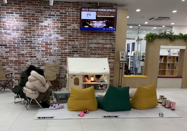 새롭게 마련된 낭만충전소 ‘독서캠핑’은 캠핑을 콘셉트로 한 독서 및 휴식 공간이다. 인디언 텐트, 빈백 소파, 캠핑 의자 등을 배치해 어린이와 가족 단위 이용자들이 편안한 분위기에서 책을 즐길 수 있도록 구성했다.