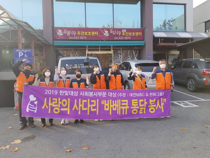 [대전=세계타임즈 이채봉 기자] 대전광역시 SNS 일만명 봉사단체 사랑의 사다리 밴드(리더 이정제)는 지난20일 오후2시,대덕구 오정동에 위치한 로뎀중증장애인거주시설(원장 김운중)에서 바비큐 통닭 50마리 봉사로 우리 사회의 따뜻한 사랑을 전달하였다.