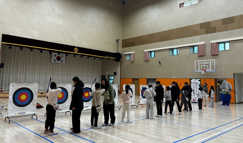 학생들은 양궁 교구를 활용해 기본 동작과 기술을 배우고, 조별 게임을 통해 보다 쉽고 즐겁게 양궁을 체험했다.