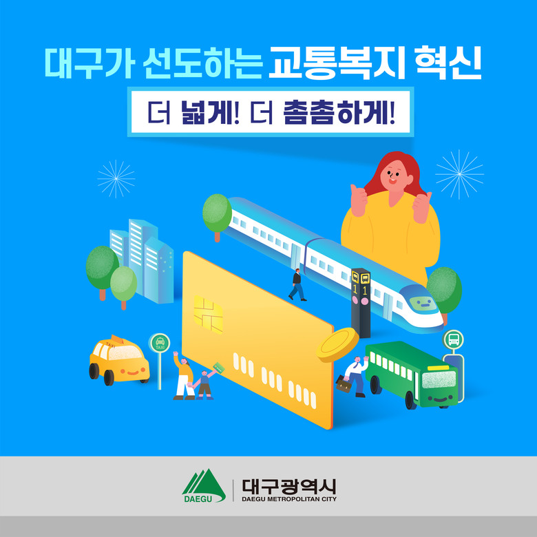 대구시는 ‘대구가 선도하는 교통복지혁신, 더 넓게! 더 촘촘하게!’를 주제로 전시관을 구성, ▲광역환승제 ▲어르신 무임교통카드 상호 이용 ▲대구형 DRT(수요응답형 교통) 등 3대 교통혁신 성과를 소개한다.