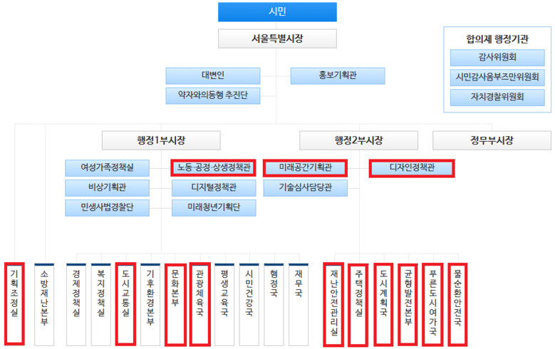 ※ 주관 부서인 미래한강본부를 비롯해 서울주택도시공사 등 사업소, 공사‧공단, 출자‧출연기관 제외
