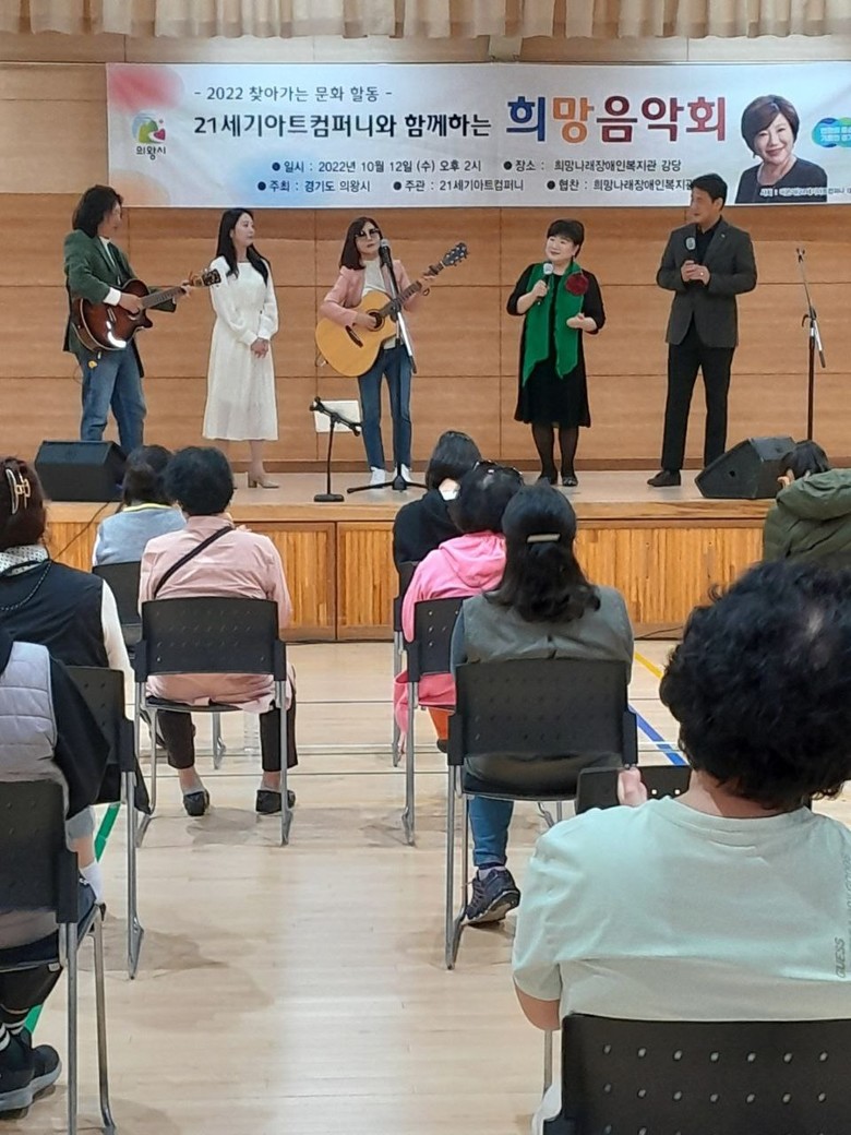 [세계타임즈 백진욱 기자] 지난해 10월 21세기아트컴퍼니 이은이 대표가 희망나래장애인복지관 에서 지역사회장애인 및 주민들을 대상으로 가을맞이 희망음악회를 개최했다.