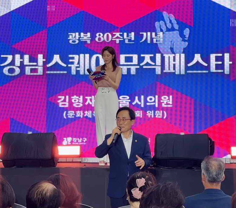 [서울 세계타임즈=이장성 기자] 서울특별시의회 김형재 의원(국민의힘, 강남2)은 지난달 29일 강남스퀘어에서 열린 광복 80주년 기념 강남뮤직페스타에 참석해 축사를 전했다.