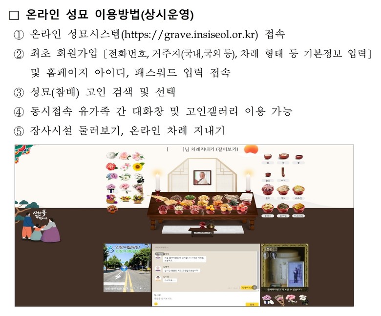 “시민들께서는 안전하고 쾌적한 성묘를 위해 사전 성묘·대중교통 이용·온라인 성묘를 적극 활용해 달라”라고 당부했다.