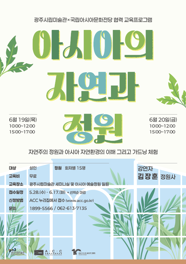 시립미술관과 국립아시아문화전당(ACC)이 공동주관하는 이번 프로그램은 아시아 각 지역의 자연환경과 정원문화를 예술교육 프로그램으로 재구성한 현장 참여형 체험 프로그램이다.