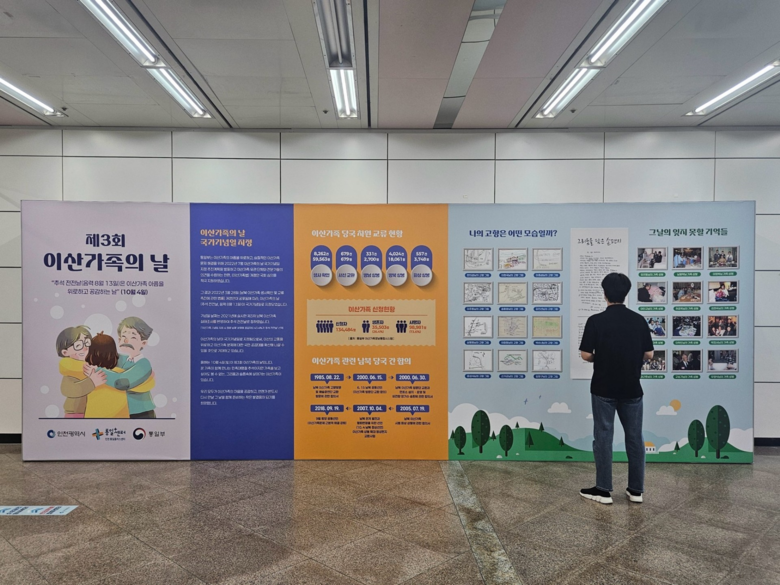 전시에서는 이산가족의 날 소개, 이산가족 관련 현황, 손 편지, 고향 그림, 가족사진 등을 선보인다. 이를 통해 시민들이 지하철역을 오가며 자연스럽게 이산가족들의 사연을 접하고 그들의 아픔을 간접적으로 체험할 수 있을 것으로 기대된다.