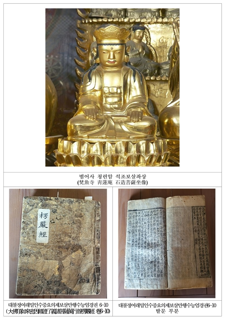◈ [시 유형문화유산] ▲함경도 해안지도 ▲범어사 청련암 석조보살좌상 ▲대불정여래밀인수증요의제보살만행수능엄경 등 총 3점 [시 문화유산자료] ▲마하사 조왕도 1점