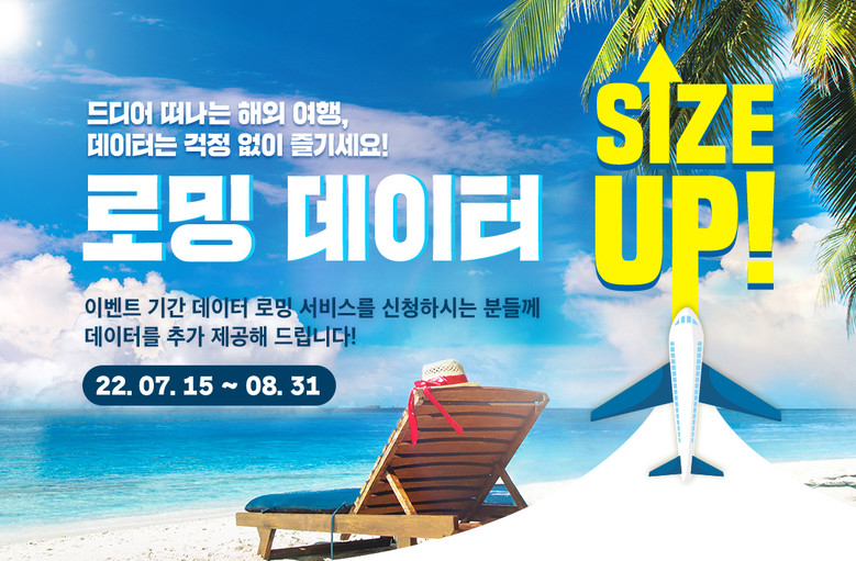 로밍 데이터 사이즈 업 프로모션은 15일부터 8월 31일까지 진행되며, 별도 참여 신청 없이 로밍 상품에 가입하는 모든 고객에게 자동 적용 된다.