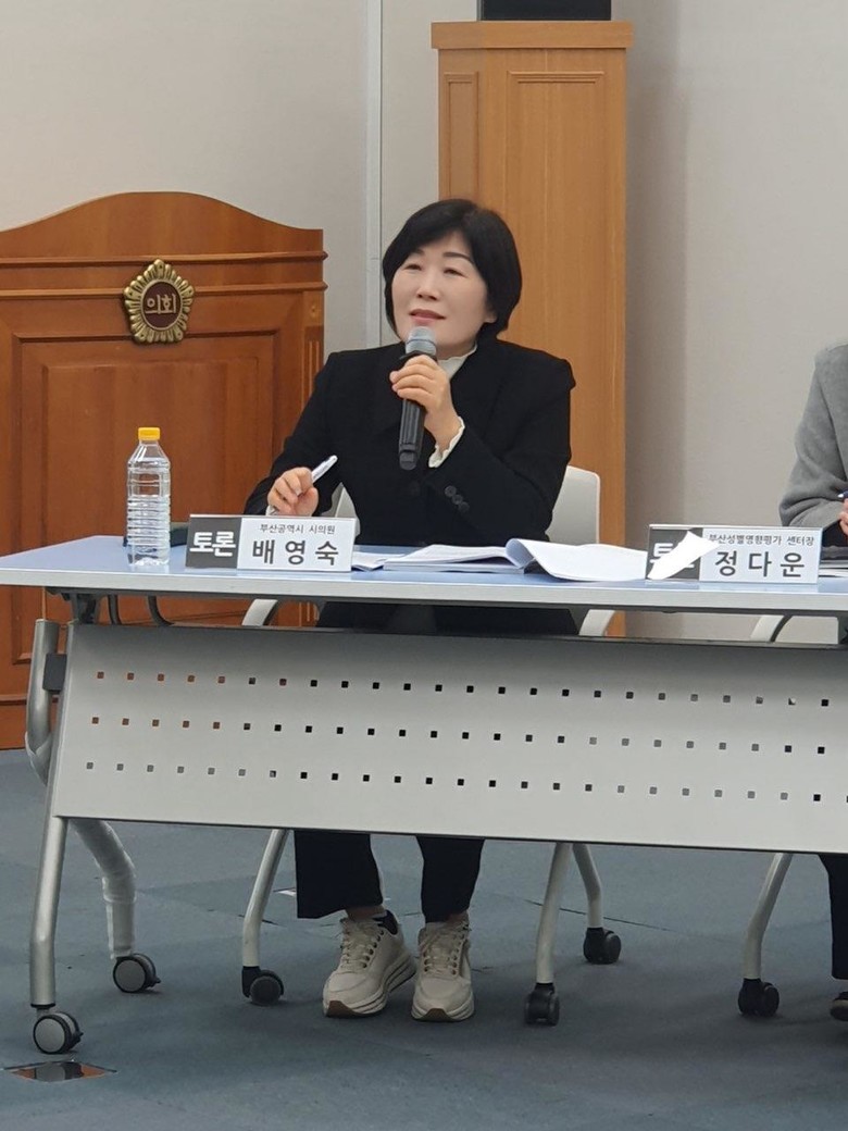 배영숙 의원은 토론문에서 “부산시 성평등 사업의 양적 증가에도 불구하고 실질적인 성평등 실현을 위한 목표 설정과 평가 체계 강화가 필요하다”고 강조하며, “성평등 사업의 실효성 확보와 담당자들의 전문성 강화를 위한 제도적 장치 마련이 중요하다”고 언급했다.