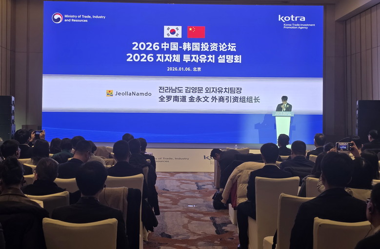 [전남 세계타임즈=우덕현 기자] 전라남도는 이재명 대통령의 중국 국빈 방문과 연계한 산업통상부의 지자체 투자유치설명회가 6일 베이징에서 열려 해상풍력, 데이터센터 등 지역 전략산업을 소개하고 관심 기업과 개별 면담을 펼쳤다고 밝혔다.