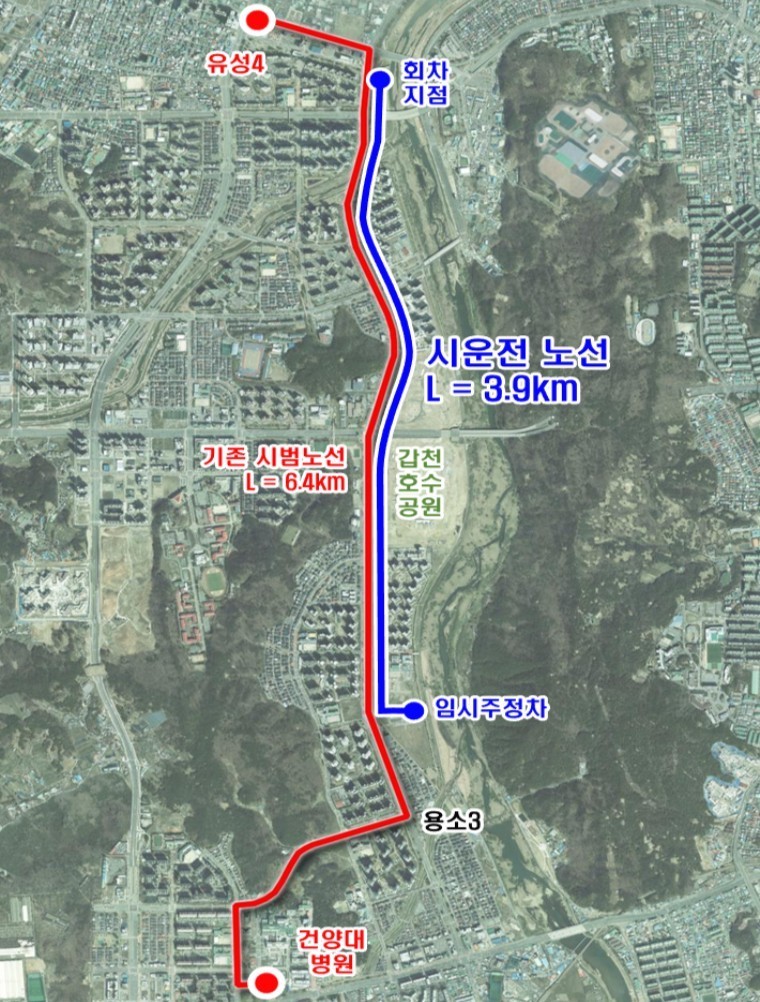 시는 향후 6월까지 도안동로 중앙버스전용차로 일부 구간(갑천4블럭~용반네거리)에서 혼잡시간을 피해 시험운행을 진행하고, 전용차로 및 차고지 등 기반 시설 구축 일정에 맞춰 올해 10월까지 단계적으로 개통할 계획이다.
