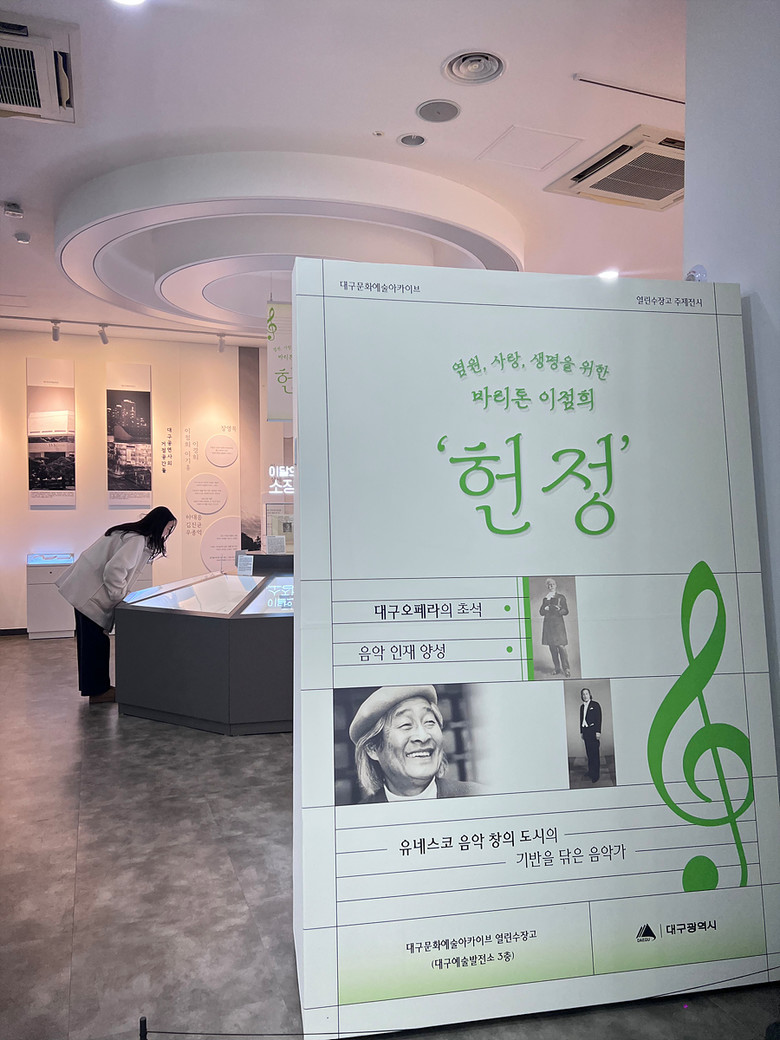 아울러 대구음악연구회·대구음악협회 결성, 교향악 운동 등 대구 음악사의 주요 전환점마다 이점희의 이름이 함께했음을 확인할 수 있는 자료와 어려운 여건 속에서도 오페라 무대를 올리기 위해 헌신했던 그의 노력이 담긴 당시 신문 기사도 전시된다. 그가 남긴 인터뷰 속 “대구 오페라계를 가꾸는 것이 나의 신앙”이라는 말은 오늘날까지도 깊은 울림을 전한다.