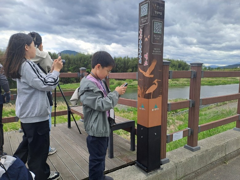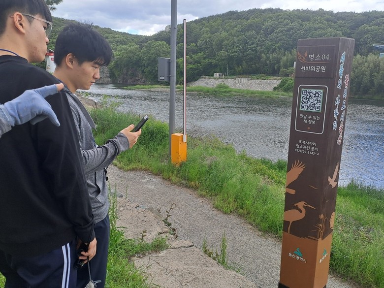 이와 연계해 탐조객들은 명소 표지판 정보무늬(QR코드)를 휴대폰으로 촬영하면 명소 내 조류 사진 및 정보를 얻을 수 있으며, 현장에서 포착한 새들을 쉽게 구별할 수 있다. 명소 내 없는 새라도 전체 사진 목록 화면에서 검색하면 울산에서 출현한 새들에 대한 정보를 찾을 수 있다.