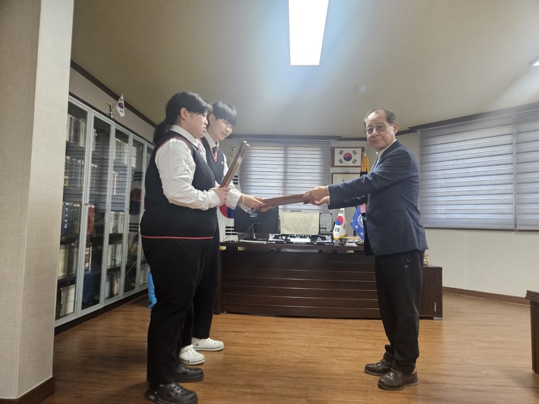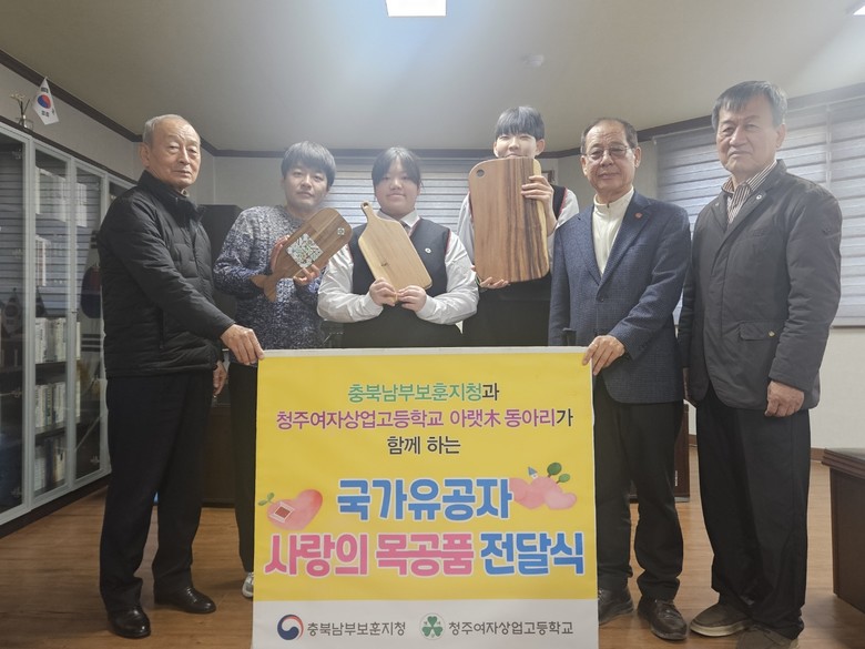 [충북 세계타임즈=이현진 기자] 청주여자상업고등학교(교장 김현희) 목공 창업동아리 아랫木 학생들이 22일(금), 11월 17일 순국선열의 날을 맞이하여 광복회 충북 청주시지회를 방문해 <사랑의 목공품(원목 도마, 타일 트레이) 나눔 봉사>를 진행했다고 밝혔다.
