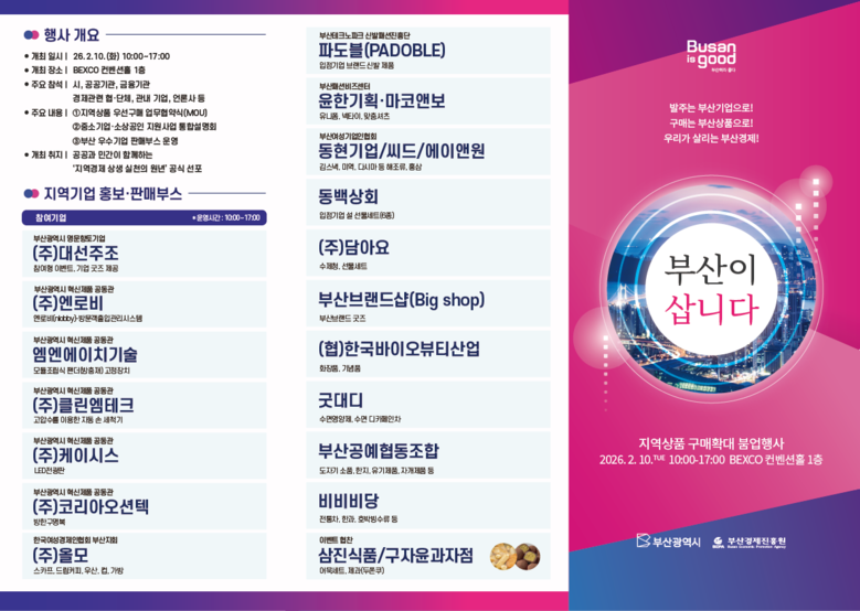 박형준 시장은 “오늘의 협약은 부산 경제의 기초 체력을 키우는 실천 동력이다”라며, “지역 상품 구매는 단순한 소비가 아니라 내 이웃의 일자리를 만들고, 우리 아이들의 미래를 지키는 가장 확실한 경제 정책이다”라고 강조했다.