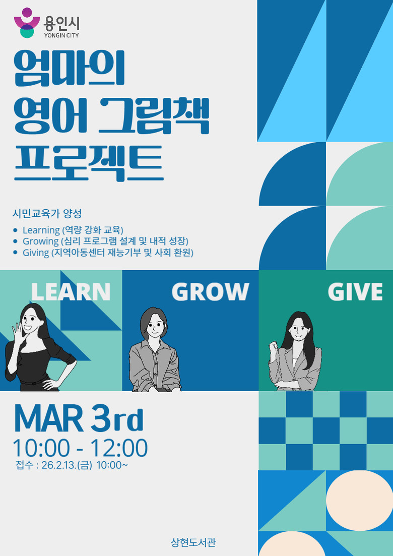 프로그램 참여 신청은 13일 오전 10시부터 상현도서관 누리집(https://lib.yongin.go.kr/sanghyeon)에서 선착순으로 이뤄진다.
