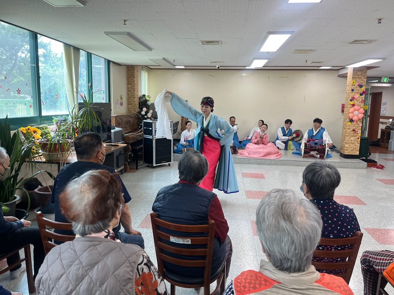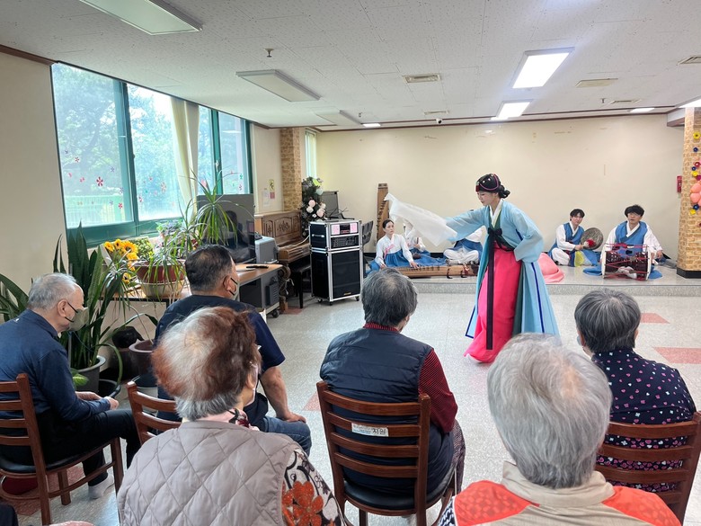 이에 시립무용단원들은 성애양로원을 찾아 ‘산조춤’, ‘살풀이춤’ 등의 전통춤으로 판을 펼치고 판소리 춘향가 중 ‘사랑가’를 비롯해 경기민요 연곡, 성주풀이 등의 남도민요를 선사한다.