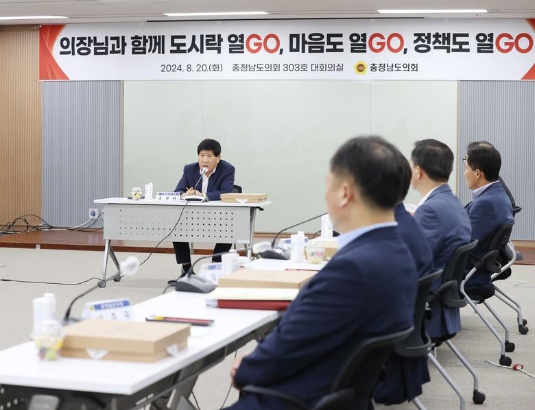 [충남 세계타임즈=백택기 기자] 충남도의회 홍성현 의장(천안1·국민의힘)은 충남도정에 대해 소통하기 위해 충남도 실국장들과 도시락 간담회를 열었다.