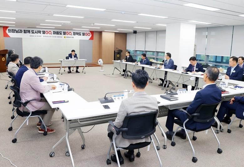 20일 도의회 회의실에서 열린 이날 간담회에는 강성기 도 기획조정실장과 10명의 실국장, 황종헌 정무수석 보좌관이 참여했다.
