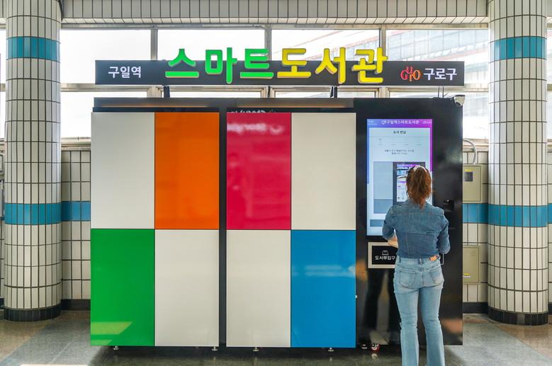 구일역 1번 출입구 내부에 마련된 스마트도서관은 역 내 운영시간에 개방된다.