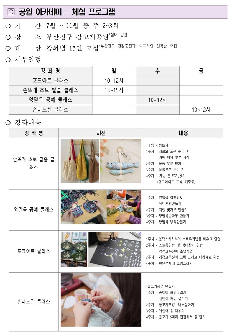 <2025년 부산광역시 공원 문화공연·생활체육·아카데미 프로그램 운영 개요>
