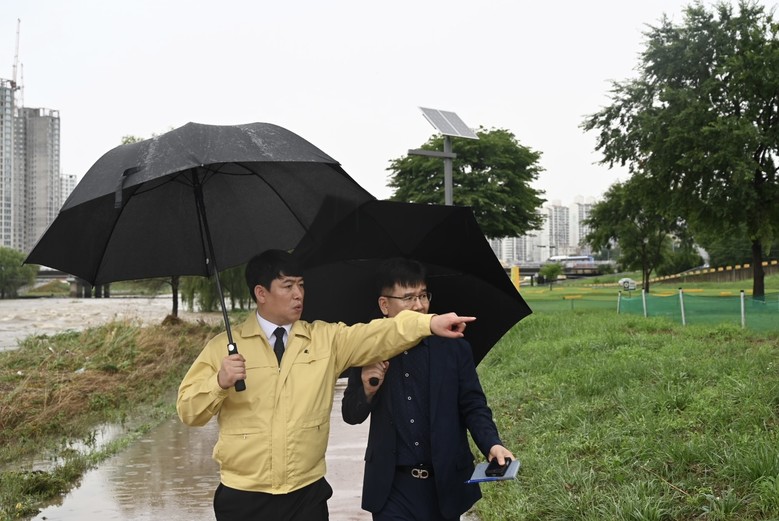 이어서 태평교 하단 우드볼장과 파크골프장을 방문해 호우 피해 상황을 점검하고 주민들의 애로사항을 청취했다.